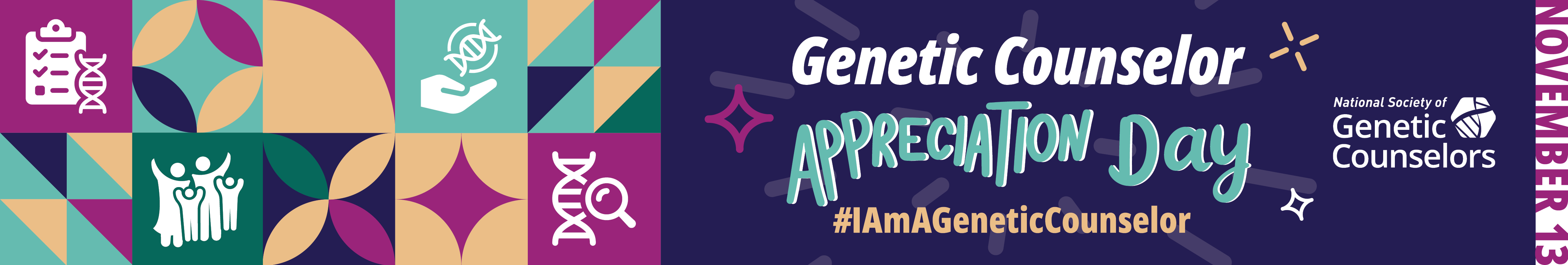 Thank you for celebrating Genetic Counselor Appreciation Day on Thursday, Nov. 13. Formerly known as Genetic Counselor Awareness Day, this annual event continues to honor the compassion, leadership and expertise of genetic counselors everywhere.